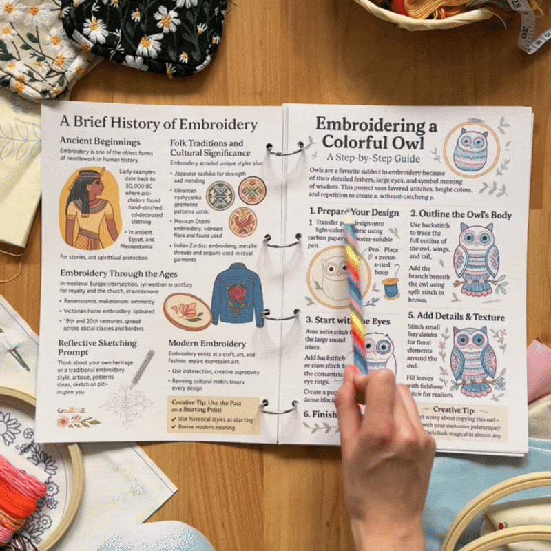 From intricate patterns to easy-to-follow tutorials, this bundle has everything you need to create stunning embroidery projects. Plus, there’s space to sketch your own designs and track your progress. Simply pick up your needle and thread, and let your creativity flow with every stitch!